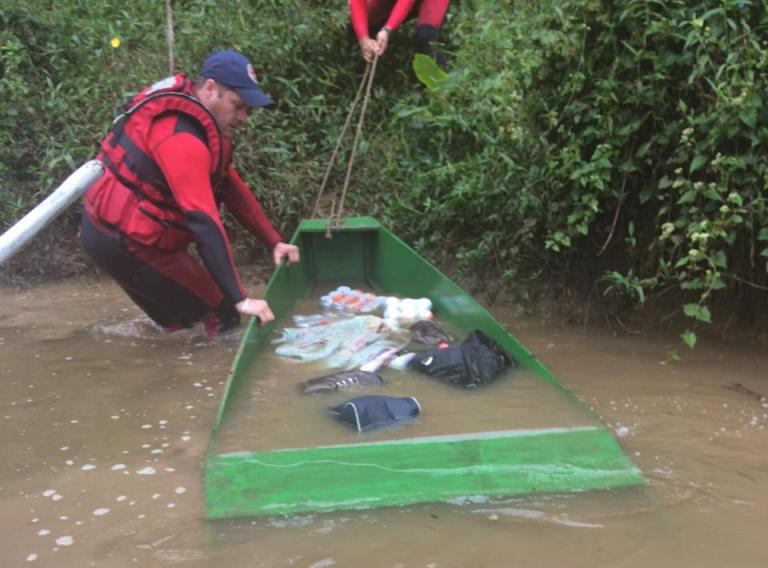 Devido às fortes chuvas que caíram no fim de semana, o rio Negro teve um acréscimo de aproximadamente três metros acima do seu leito normal, prejudicando as buscas das equipes de mergulho.