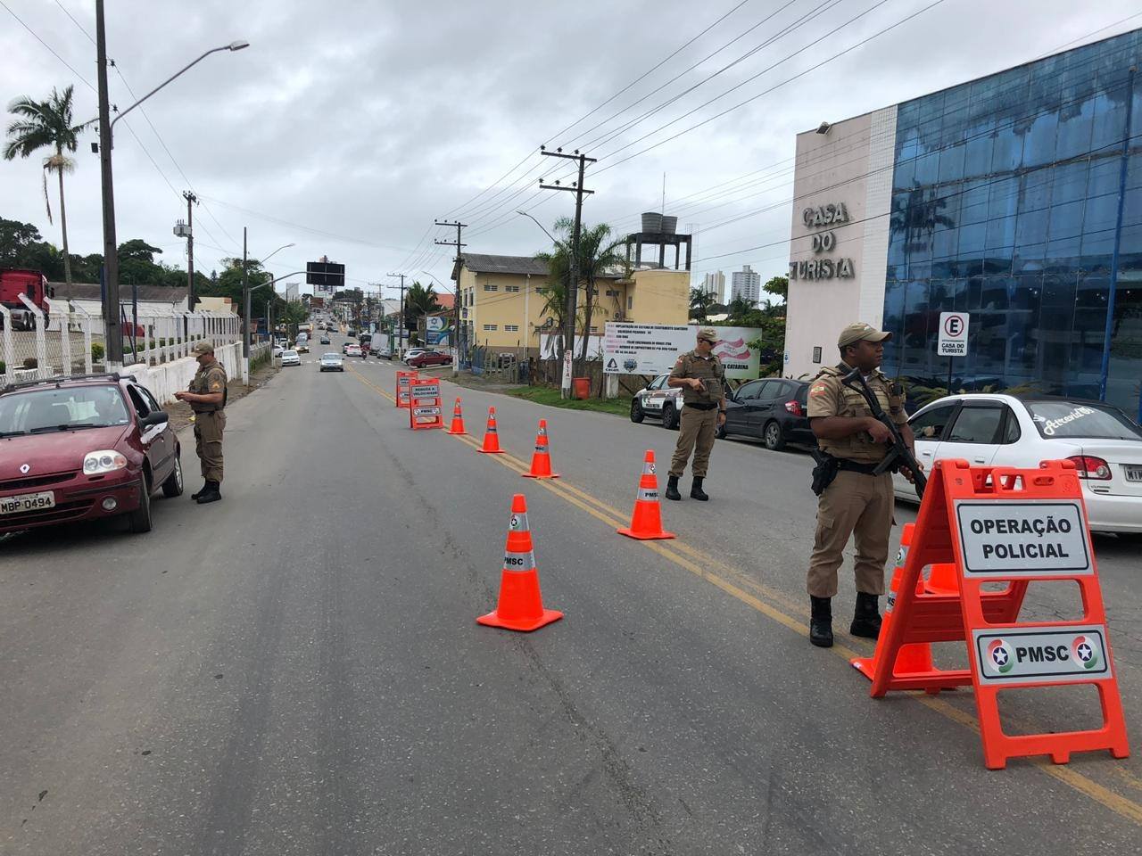 Soldados da Polícia Militar de Balneário Piçarras iniciaram hoje pela manhã a Ação Nacional da Operação Tiradentes com barreiras na Avenida Getúlio Vargas, principal acesso ao município.