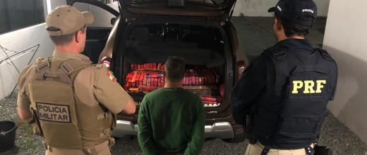 A droga estava no porta-malas do carro Duster que ele conduzia. Segundo a polícia, o homem de 28 anos disse que entregaria o carregamento em Balneário Camboriú. Ele tem passagens por crimes como roubo e tráfico, afirmam as autoridades. O veículo tem registro de roubo, de acordo com a PRF.