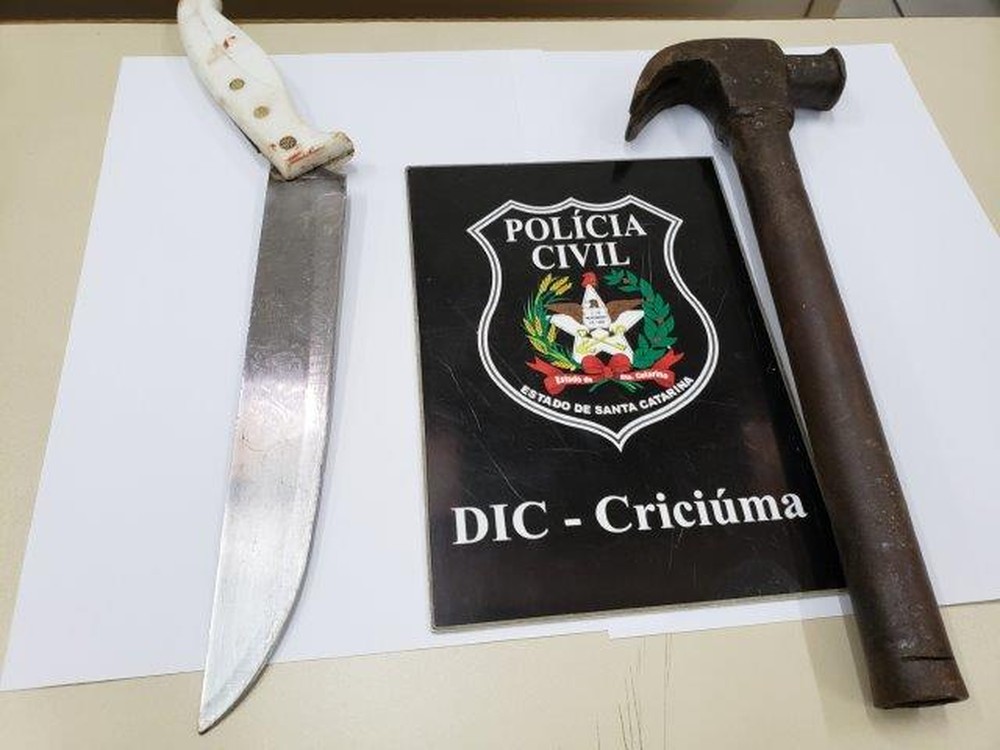Conforme a polícia, o martelo e a faca usada no crime foram abandonados em um terreno baldio. Os objetos foram encontrados e apreendidos pela polícia.