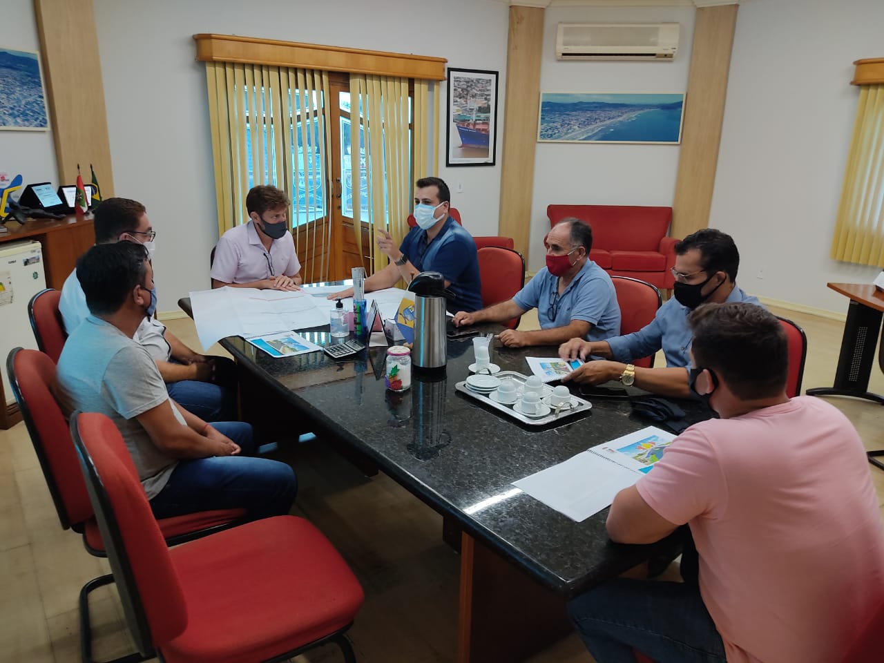 Participaram da reunião o Prefeito de Penha, Aquiles José Schneider da Costa, o presidente da Câmara Municipal de Penha, Maurício Olívio Brockveld, e o vereador Antônio Alfredo Cordeiro Filho (Toninho). Eles foram recebidos pelo Chefe do Executivo, vice-prefeito e os vereadores navegantinos Jassanan Monan e Paulinho Melzi.